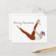 Tarjeta de Navidad de Pilates con estiramiento de una sola pierna recta con muérdago