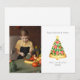Ilustración de una porción de pizza con forma de árbol de Navidad decorada con ingredientes rojos y verdes y una estrella en la parte superior. Personaliza el nombre, año y foto.