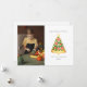 Ilustración de una porción de pizza con forma de árbol de Navidad decorada con ingredientes rojos y verdes y una estrella en la parte superior. Personaliza el nombre, año y foto.