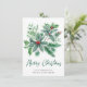 Tarjeta de felicitación navideña de rama de bayas de acebo festivo.