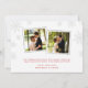 Comparte un trío de tus fotos de boda favoritas esta Navidad con nuestra tarjeta navideña dulcemente festiva. La parte delantera presenta "merrily ever after" en vibrante escritura roja de caligrafía moderna de las fiestas, superpuesta en tu foto a sangre. La tarjeta se invierte para revelar espacio para dos fotos pequeñas adicionales con un fondo de copos de nieve sutilmente estampado. Personaliza con tus nombres y agrega un mensaje personalizado preimpreso o usa el espacio para una cálida nota de agradecimiento manuscrita. ¡Una forma perfecta de combinar tus tarjetas de Navidad y notas de agradecimiento de boda!