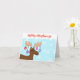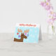 Un pequeño reno con adornos navideños colgando de sus cuernos.