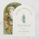 Envía alegría navideña atemporal con esta elegante tarjeta de Navidad minimalista que presenta una pintura al óleo de estilo vintage de Santa llevando un pino. Perfecta para aquellos que aman el arte clásico y el diseño navideño simple y sincero.