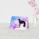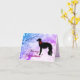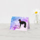 Una silueta de Silken Windhound con texto "¡Feliz Navidad!" sobre un fondo invernal en tonos azules y rosados.