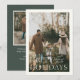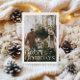 FELICES FIESTAS | Tarjeta de Navidad con foto. Tipografía minimalista moderna en beige suave con fondo de color verde oscuro.