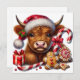 Envía deseos dulces de vacaciones con esta adorable tarjeta plana de vacaciones con una vaca de las Highlands rodeada de bastones de caramelo, galletas de jengibre y golosinas festivas. Una forma encantadora de compartir la magia de la temporada