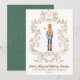 Tarjeta de Navidad del Ballet El Cascanueces con cresta dorada y dorso verde brillante.
