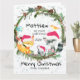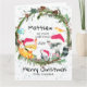 Un conjunto de animales del bosque con guirnalda de abetos perennes listos para celebrar la primera Navidad de Baby con él. Envíe una tarjeta de primera Navidad a su nieto. Personalice todo el texto, desde los nombres hasta el mensaje interior.