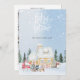 Elegante tarjeta de Navidad con tema de nieve. La casa cubierta de nieve, un árbol de Navidad, un muñeco de nieve y Santa Claus son las características principales de esta tarjeta... Combinada con una tipografía única "que nieve" la hace lucir más linda y elegante. Desea a tu ser querido con esta tarjeta esta Navidad....