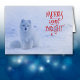 Esta bonita tarjeta de vacaciones tiene una impresionante fotografía de un pequeño zorro ártico blanco en la parte delantera, con el texto estilizado en rojo "Alegre y Brillante". El texto interior se puede cambiar a lo que desees.