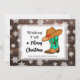 ¿Está buscando una tarjeta de Navidad de estilo country para desear a sus amigos y familiares una Feliz Navidad? Aquí hay una dulce tarjeta con gráficos de botas de vaquero con acebo, sombrero de vaquero y el texto, "Deseando a todos una Feliz Navidad. Fondo rústico de madera y copos de nieve.