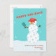 Tu familia y amigos se reirán cuando vean esta tarjeta de Navidad del muñeco de nieve de pickleball. En rojo, azul y blanco. El texto debajo del muñeco de nieve es personalizable. Parte de una colección de Parcel Studios.