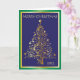 Tarjeta de Navidad doblada azul brillante, dorado