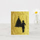 Tarjeta de Navidad dorada con silueta de doctora