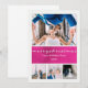 Tarjeta de Navidad elegante en acuarela de pavo real rosa. Reemplace con sus imágenes y texto. También puede agregar su mensaje extendido al dorso de la tarjeta.
