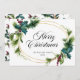 Tarjeta de felicitación navideña elegante con bayas de acebo y abeto.