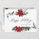 Tarjeta de Navidad de flor de pascua y muérdago en acuarela.