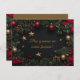 Celebre la temporada festiva con esta elegante tarjeta de Navidad que presenta una corona bellamente detallada adornada con cintas rojas, estrellas doradas y pino verde exuberante. El fondo oscuro lujoso realza los elementos festivos, creando un saludo navideño sofisticado y cálido. La parte frontal de la tarjeta incluye un mensaje sincero: "¡Frohe Festtage und ein gutes neues Jahr!" (¡Felices Fiestas y un Feliz Año Nuevo!), mientras que la parte posterior ofrece campos de texto y dirección totalmente personalizables, lo que le permite personalizar sus deseos navideños para sus seres queridos. Perfecta para enviar un toque de elegancia esta Navidad.