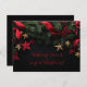 Celebre la temporada festiva con esta elegante tarjeta de Navidad que presenta una corona bellamente detallada adornada con cintas rojas, estrellas doradas y pino verde exuberante. El fondo oscuro lujoso realza los elementos festivos, creando un saludo navideño sofisticado y cálido. La parte frontal de la tarjeta incluye un mensaje sincero: "¡Frohe Festtage und ein gutes neues Jahr!" (¡Felices Fiestas y un Feliz Año Nuevo!), mientras que la parte posterior ofrece campos de texto y dirección totalmente personalizables, lo que le permite personalizar sus deseos de Navidad para sus seres queridos. Perfecta para enviar un toque de elegancia esta Navidad.