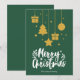 Navidad Feliz en verde en una fuente de escritura decorativa elegante en blanco que cuelga diseño de iconos de Navidad. Esta tarjeta de Navidad de color verde está diseñada para que puedas cambiar el color del fondo y también ingresar el nombre de tu familia o eliminarlo si deseas tener solo el diseño sin el texto. También puedes personalizar el color de las palabras "Feliz Navidad" si lo deseas.