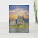 Tarjeta de Navidad escocesa de las montañas que ofrece una imagen de la puesta del sol del castillo de Eilean Donan