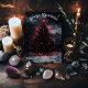 Tarjeta de Navidad Espeluznante. © Dark Heart Desires. Esta tarjeta tiene un árbol de Navidad solitario con decoraciones y luces rojas brillantes. Está en blanco por dentro para que puedas agregar tus propios mensajes de Navidad.
