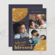 Tarjeta de Navidad moderna con brillo dorado y azul marino oscuro, asequible, con formas redondeadas brillantes y estrellas celestes, y con tipografía de moda "es la temporada para estar bendecido". +++++++++ Fácil de personalizar con las fotos y el nombre de su familia. ++++++++++ POR FAVOR LEA ESTO ANTES DE COMPRAR. Esta es una tarjeta de boda económica impresa en una hoja de papel (cada hoja tiene una tarjeta). ++++ Para obtener la mejor relación precio-calidad, nuestro consejo es elegir el tipo de papel Semibrillante (es lo suficientemente grueso como para ser utilizado para papelería) ++++ Si necesita sobres, elija la OPCIÓN DE SOBRE. +++ Verifique toda la información y la ortografía de su texto porque recibirá exactamente lo que ve, nadie más verificará nada antes de imprimir. ++++ Esta tarjeta está diseñada para un tamaño de 4,5 "x 5,6". En el caso de que elija otro tamaño de tarjeta y el texto se salga de la página, todo deberá ser corregido antes de agregar el producto