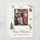 Celebra las fiestas con esta tarjeta de Navidad familiar con foto diseñada de manera hermosa. Con un clásico fondo marfil y acentos festivos como renos, adornos, copos de nieve y un árbol de Navidad, esta tarjeta personalizable es perfecta para difundir alegría navideña. Agrega tu foto familiar favorita, nombre y año para crear un recuerdo que tus seres queridos atesorarán durante años.
