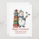 Envía alegría navideña con un toque del campo de golf. Esta tarjeta festiva presenta a un golfista feliz disfrutando de la temporada, lo que la convierte en la elección perfecta para amantes del golf y amigos del club de campo. Personaliza con tu propio saludo, apellido o mensaje de liga para compartir cálidos deseos para la próxima temporada. Una forma divertida y elegante de celebrar la Navidad, el Año Nuevo o cualquier festividad invernal con aquellos que comparten tu amor por el juego.