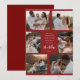Esta tarjeta de Navidad de hermoso diseño presenta un fondo rojo intenso y muestra seis fotos familiares preciadas, lo que te permite compartir tus recuerdos favoritos del año. El centro de la tarjeta destaca un mensaje sincero que puedes personalizar seguido de tu apellido y el año. El diseño minimalista pero festivo combina el calor personal con la alegría navideña, lo que hace que esta tarjeta sea perfecta para enviar saludos de la temporada a seres queridos. Su elegante diseño y su reflexivo mensaje capturan la alegría y las bendiciones de la temporada navideña.