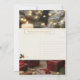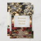 Envía cálidos deseos navideños con esta encantadora tarjeta de Navidad. La parte delantera presenta una escena acogedora y festiva con pinos cubiertos de nieve, luces de hadas brillantes, velas encendidas, regalos envueltos y delicadas bayas de acebo. Rojos intensos, verdes oscuros y dorados cálidos crean una atmósfera reconfortante perfecta para la temporada. La parte trasera está diseñada cuidadosamente con espacio para tu mensaje personalizado, la dirección del destinatario y sutiles acentos festivos que reflejan la ilustración de la parte delantera. Elegante, caprichosa y de alta calidad, perfecta para difundir alegría navideña a familiares, amigos o clientes. Ideal para coleccionistas y cualquiera que ame diseños navideños encantadores y llamativos.