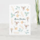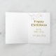 Tarjeta de Navidad inspirada en Escandinavia. Símbolos nórdicos Hygge, hojas, flores. Mensaje editable y nombre dentro con una rama de Navidad con adornos.