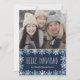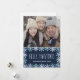 Esta tarjeta de memoria moderna incluye la "Feliz Navidad" rodeado por un borde de Hersos copos de Navidad de color azul y un fondo oscuro.