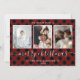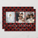 Tarjeta de Navidad de cuadros rojos con 3 de tus fotos. Fácil de personalizar con tus nombres y año.