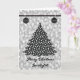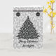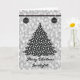 Tarjeta de Navidades en blanco y negro para tu Hairstylist. El diseño es un árbol de polika punto en blanco y negro con un fondo de bokeh y bombillas colgando en la parte superior. Diseño perfecto para tu peluquero. Las palabras en el interior se pueden cambiar. Gracias al Hungryjpeg y a la Fabrica Creativa por algunos de los elementos del diseño.