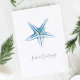 Esta tarjeta de Navidad con tema de playa presenta mi estrella de mar original pintada a mano en acuarela en tonos de azul sobre un fondo blanco crujiente. Las palabras "Seas & Greetings" están escritas en una tipografía moderna de letra de pincel. El interior presenta un color azul claro sólido con tu saludo personalizado en blanco. Personaliza las palabras para que digan "Feliz Navidad", "Paz en la Tierra" o lo que quieras. Para ver más tarjetas de Navidad personalizadas como esta, visita www.zazzle.com/dotellabelle.