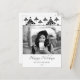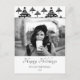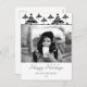 Tarjeta postal de foto de vacaciones de Navidad con estilo y moderno. La tarjeta tiene un esquema de color blanco y negro - con foto, deseo de felices fiestas, su nota personal y un número de año en letra negra de moda. El patrón abstracto del árbol de Navidad negro está en la parte delantera y trasera de la tarjeta. Inserte su foto favorita en la plantilla - la foto en blanco y negro coincide muy bien con el diseño. Personalice esta tarjeta con su nombre y número de año. Es un gran diseño para cualquier persona, especialmente para personas solteras.
