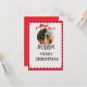 Celebre las fiestas con esta tarjeta de Navidad personalizada para perros con la foto de su mascota dentro de un marco de adorno festivo. El borde rojo clásico y el acento de la cinta crean una sensación cálida de temporada, lo que la convierte en un saludo divertido y emotivo para amigos y familiares.