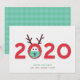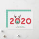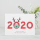 La tarjeta perfecta para las fiestas de 2020, este diseño personalizable con una ilustración de un reno con máscara integrado en el año 2020 lo dice todo. Un poco de humor para aligerar el ambiente en esta temporada de fiestas. En rojo, verde y marrón. El saludo y los nombres son personalizables.