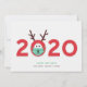 La tarjeta perfecta para las fiestas de 2020, este diseño personalizable con una ilustración de un reno con cubrebocas incrustado en el año 2020 lo dice todo. Un poco de humor para aligerar el ambiente esta temporada navideña. En rojo, verde y marrón. El saludo y los nombres son personalizables.