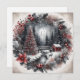 tarjeta de Navidad plana con corona y paisaje