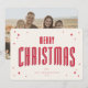 Una tarjeta de Navidad fotográfica grande, audaz, simple y sin complicaciones. Perfecta para uso personal o corporativo. Cuenta con un saludo navideño en una fuente retro rodeada de estrellas estilizadas y detalles personalizados editables debajo. Simplemente cambie su propia foto en la parte posterior. También disponible en otros colores, con un mensaje impreso en la parte posterior en lugar de una foto, como diseño de estampado en foil y como tarjetas plegadas.