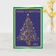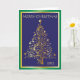 Tarjeta de Navidad plegada azul brillante, dorada