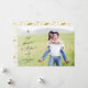 Esta sencilla y moderna tarjeta de Navidad cuenta con una foto completa y letras de himnos. La frase "Dejen que el cielo y la naturaleza canten" está escrita en hermosa letra de caligrafía negra y coronada con una pequeña cruz. El texto negro se superpone a su foto favorita. Agregue sus nombres y año para una tarjeta de vacaciones personalizada. La parte trasera de la tarjeta está decorada con un patrón de follaje invernal de falso foil dorado.