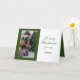 Esta tarjeta de vacaciones tiene un diseño básico de doblez. El lado izquierdo tiene un área para tu foto y el lado derecho tiene tu saludo de vacaciones. Dentro de la tarjeta hay un área para tu mensaje personalizado.