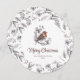 Watercolor La tarjeta navideña Merry con ave robina y follaje de invierno y bayas. Personalice fácilmente esta tarjeta de vacaciones tradicional con su nombre familiar y texto.