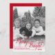 Esta tarjeta navideña es simple y minimalista, pero festiva. Presenta una foto en blanco y negro que ocupa todo el espacio con un texto en caligrafía roja que dice "Alegre y Brillante". Hay espacio para los nombres de su familia y el año. Una forma maravillosa de enviar saludos de la temporada.