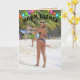 TARJETA DE NAVIDAD TROPICAL CON UNA BELLA CHICA DE PLAYA DE GRAN TRASERO. "DESEOS CALUROSOS"