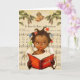 Tarjeta de Navidad vintage afroamericana. Joven niña afroamericana cantando en el coro frente a una hoja de música. Agrega tu propio verso para hacerla más personal.