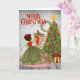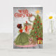 Tarjeta de Navidad vintage afroamericana con mujer recortando el árbol de Navidad